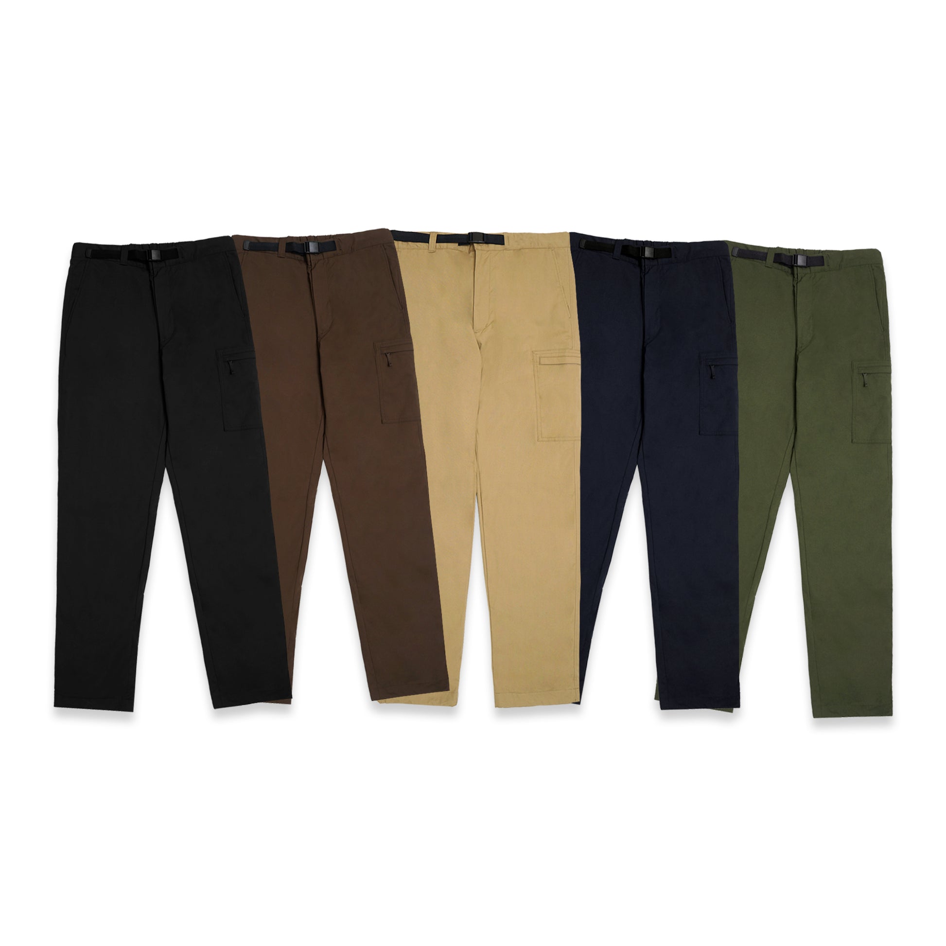 2 Front Pockets, 1 Cargo Pocket with Zipper, 2 Back Pockets.