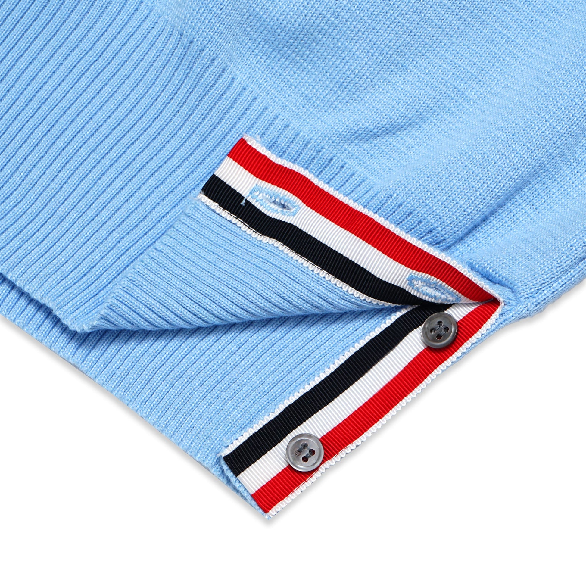 Grosgrain Loop Tab and Buttons at Front Opening, Cuffs and Vents.