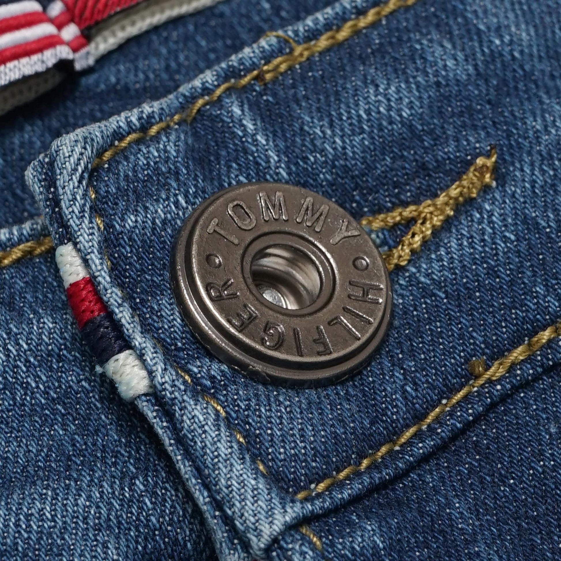 Branded Metal Button and Rivets.